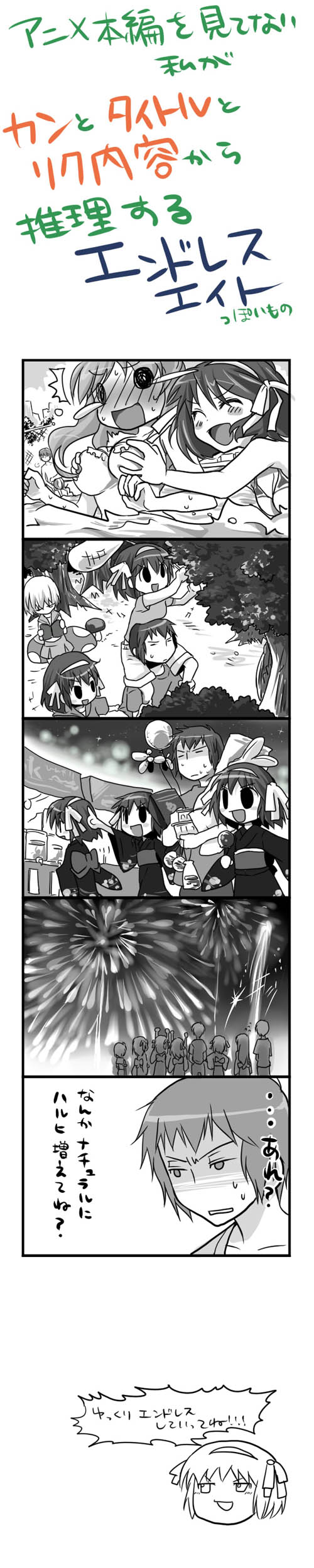 某所で「8人のハルヒがゆっくりエンドレスエイトしていってね」というリクエストをいただいたのですが、
